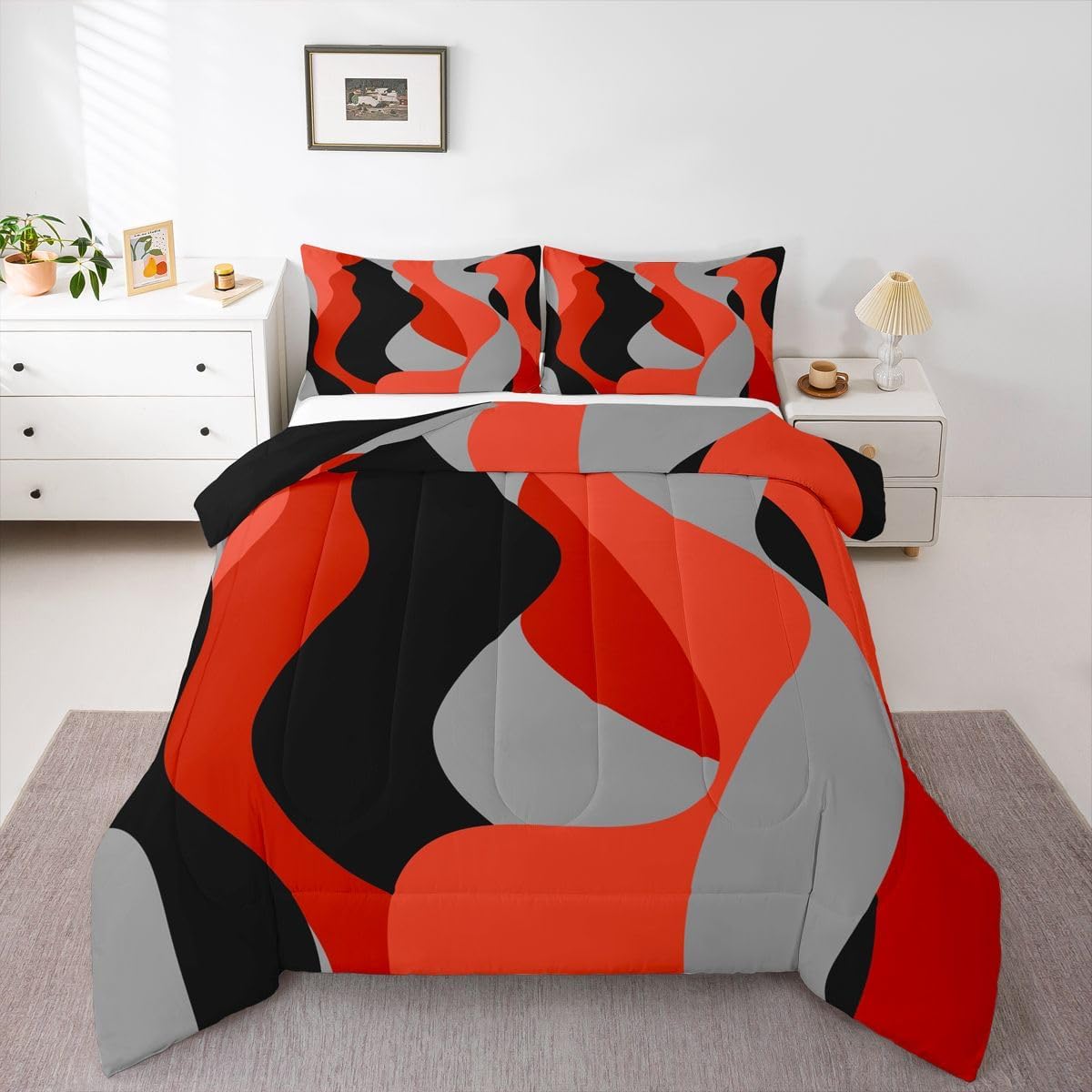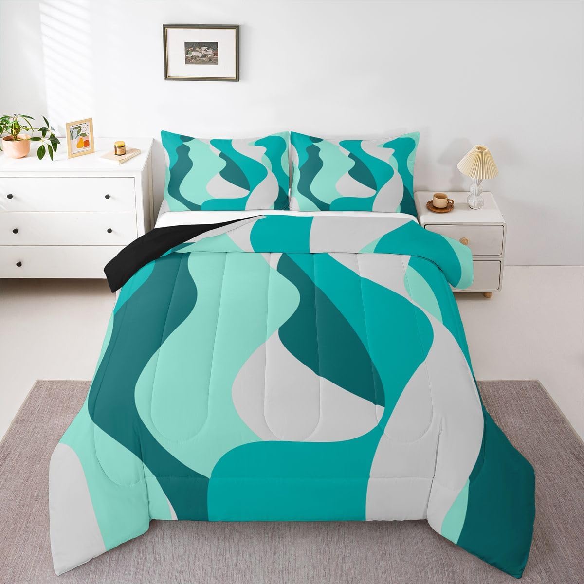 Welcome to our store We have specialized in home textile for many years:We are contribute to provide good customer service and products Size Information Twin size: 1 Down Comforter 68"W x 90"L and 1 Quilted Pillowcase 30"W x 20"L Full size: 1 Down Comforter 79"W x 90"L and 2 Quilted Pillowcases 30"W x 20"L Queen size: 1 Down Comforter 90"W x 90"L and 2 Quilted Pillowcases 30"W x 20"L King size: 1 Down Comforter 104"W x 90"L and 2 Quilted Pillowcases 36"W x 20"L Versatility We have many kinds of styles for you to choose: You can easily find a product that suits the style of your room The item is not only good for your bedroom,guest room,living room or Rv,but also a great Present for holidays or anniversaries for people who you love Modern Design The luxury aesthetic comforter set is made by reactive printing and dyeing process:The pattern is clear, the color is lasting and bright, which will not fade after repeated washing Personalized As a manufacturer of digital printed home textiles,we follow current trends and bring you the latest and stylish home textile products The item will make the room decorated in exquisite taste Our Wish We sincerely hope you'll love the bed set